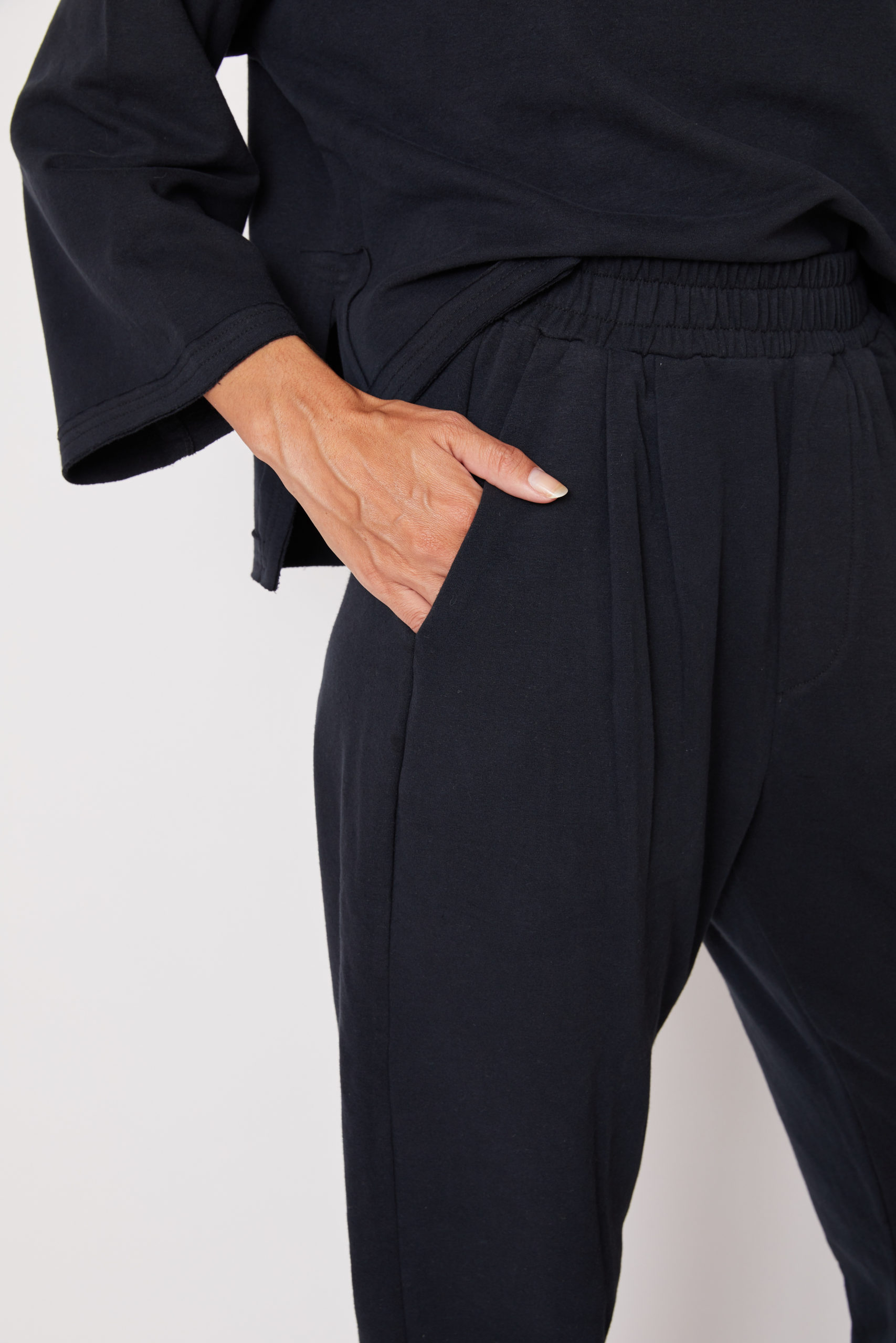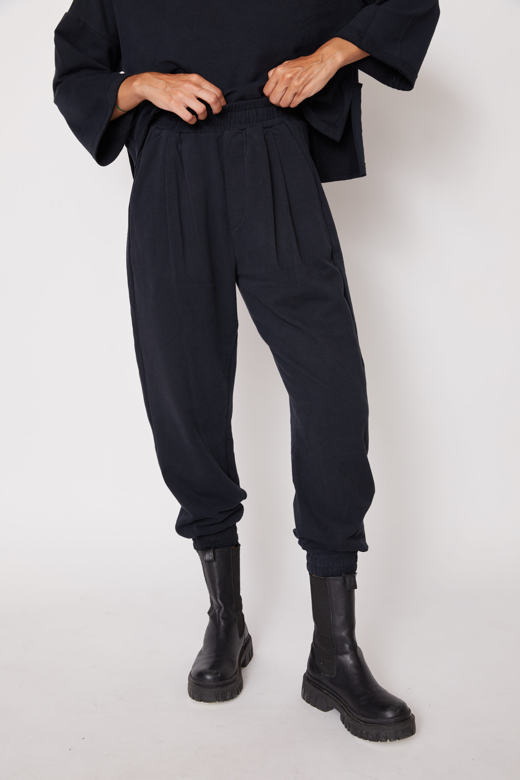 Joggineta ultra comfort, en rústico esmerilado, de calce oversize. Con tablas en el delantero y cartera falsa, dándole un toque femenino que te va a encantar. Puños y cintura con elástico, realmente más cómodo no existe. Composición: 95% algodón · 5% elastano.