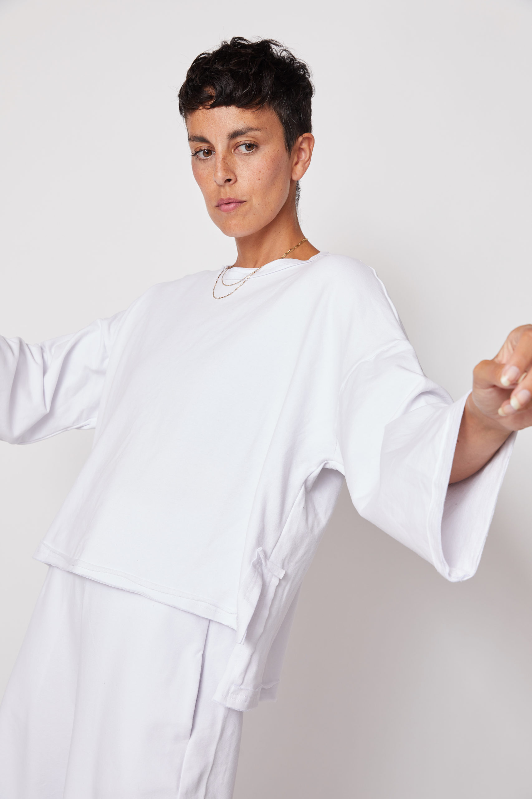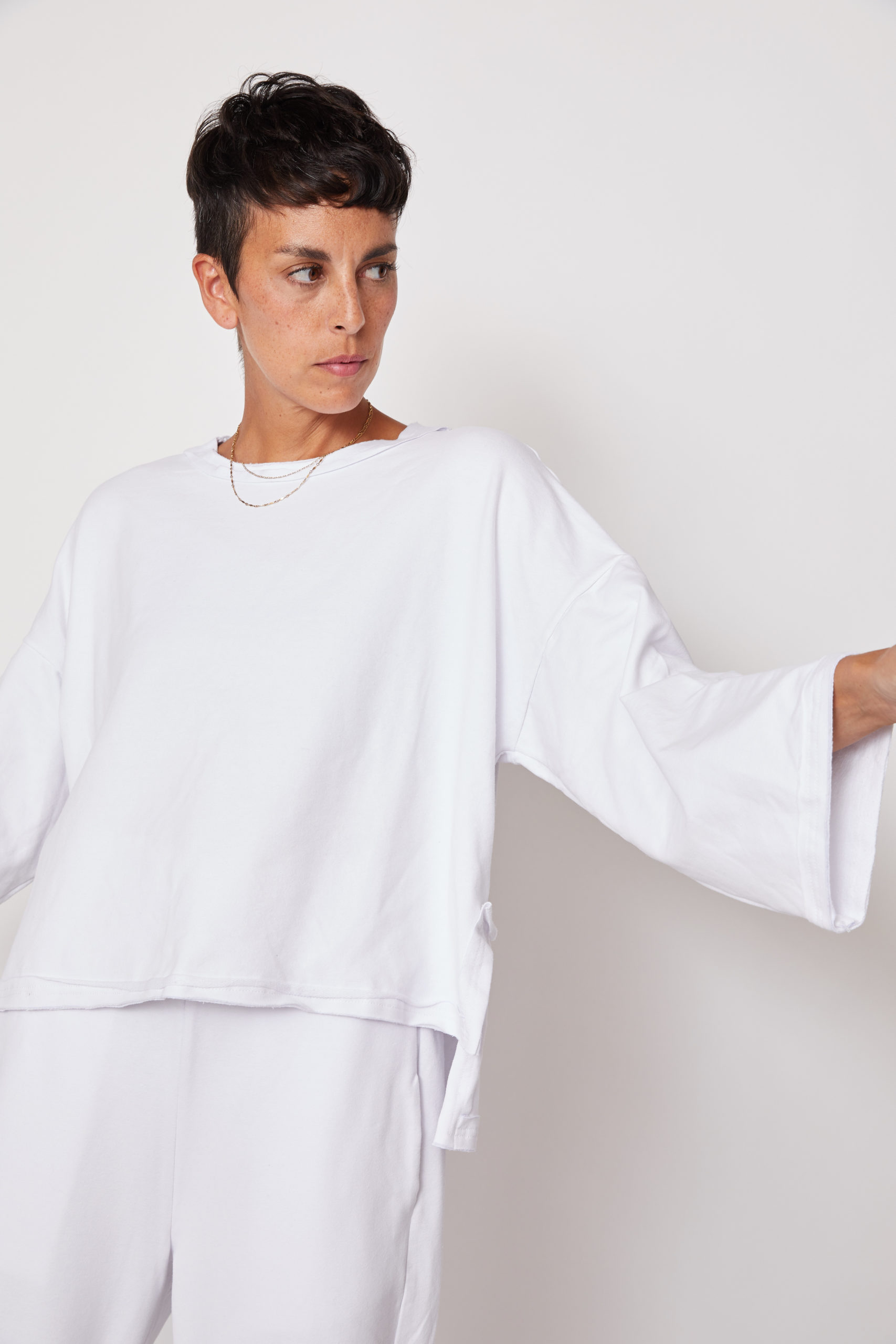 En rústico esmerilado, lo tocás y no lo vas a poder creer. Con detalles al corte en todas las terminaciones, porque no sólo parecemos relajadas, si no que también lo somos. El ruedo es irregular, más corto adelante y más largo atrás, combinable tanto con nuestra Babucha Soñar como con nuestro Pantalón Simple. Mangas amplias, cómodas y tres cuartos, dando a nuestras manos la libertad que necesitan. Composición: 95% algodón · 5% elastano.