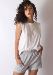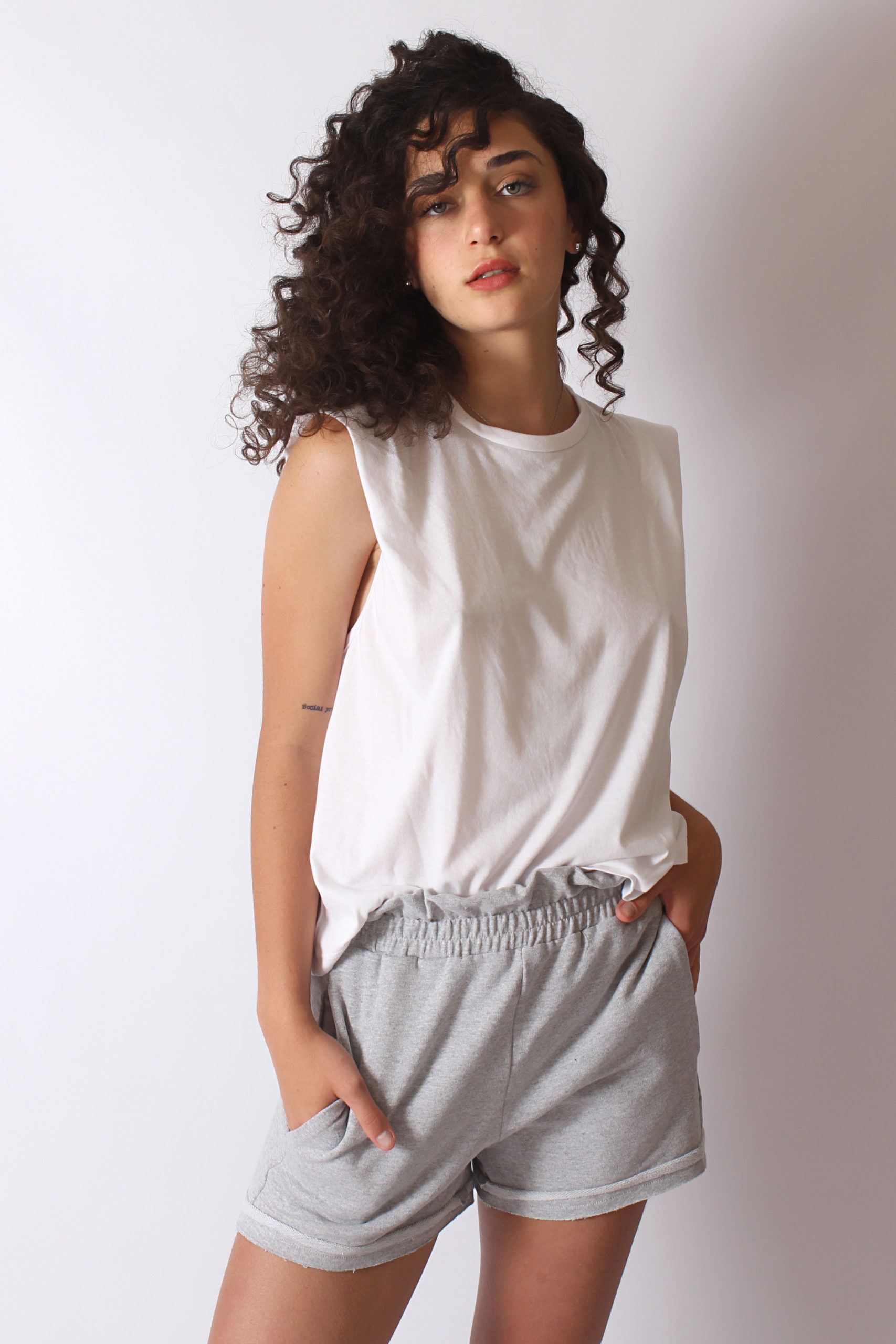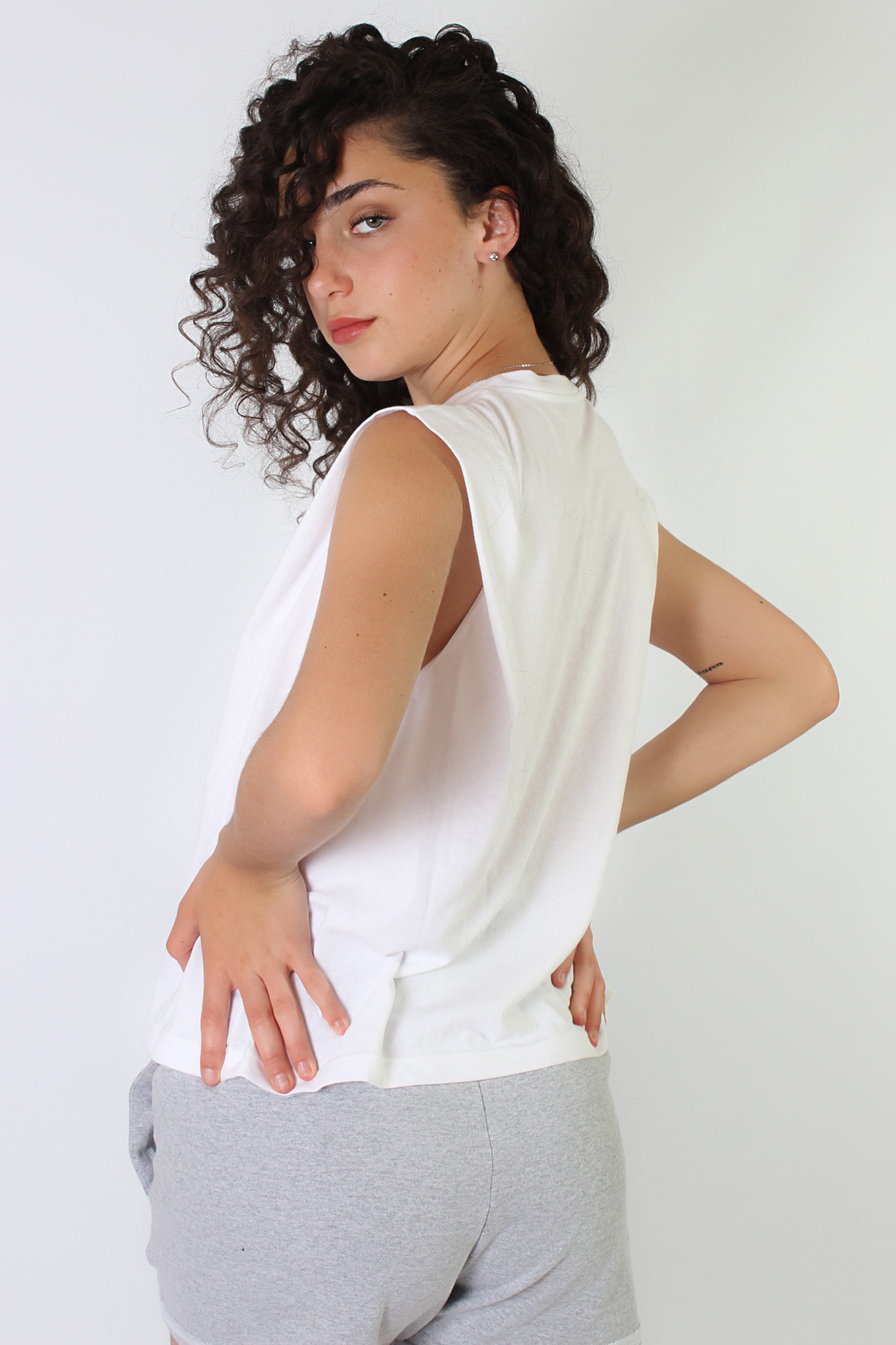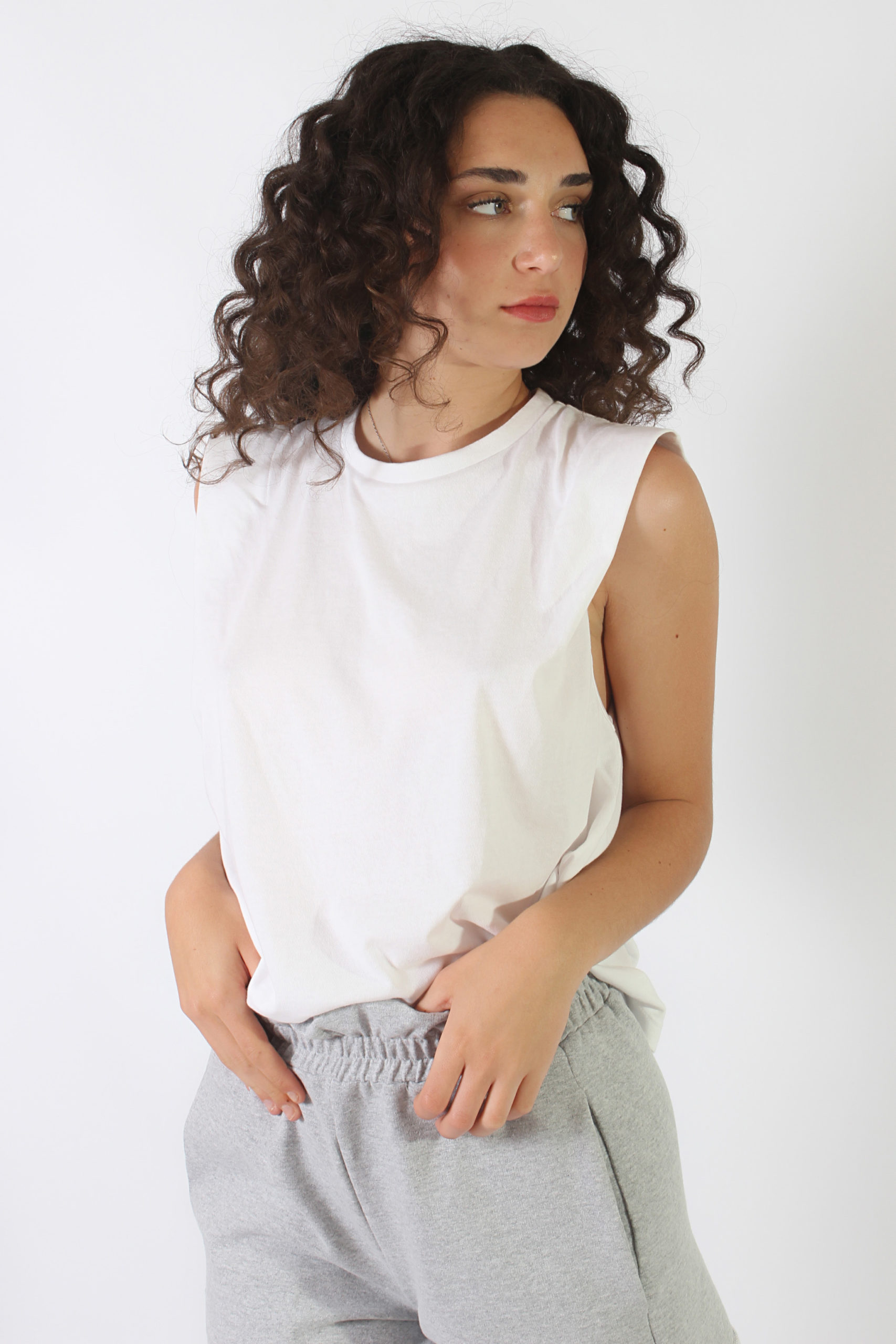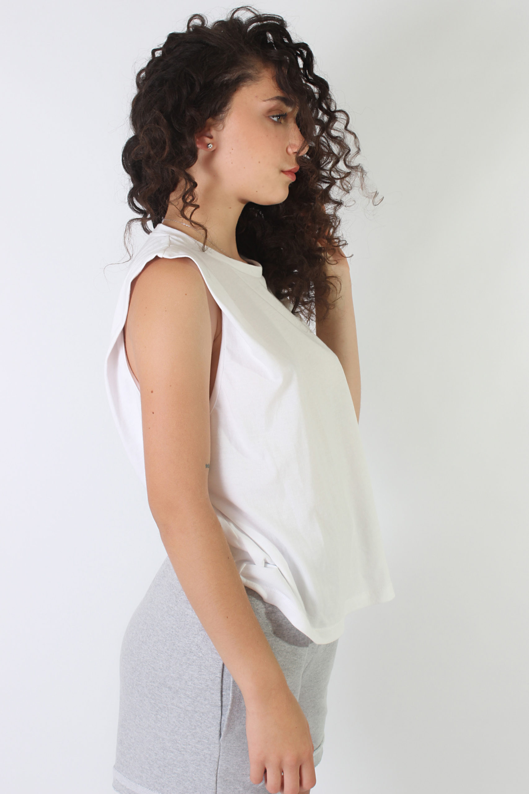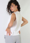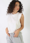 Musculosa con alerones en hombros que generan efecto hombrera, suave, delicada y tan canchera que no vas a dejar de usarla.