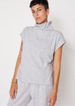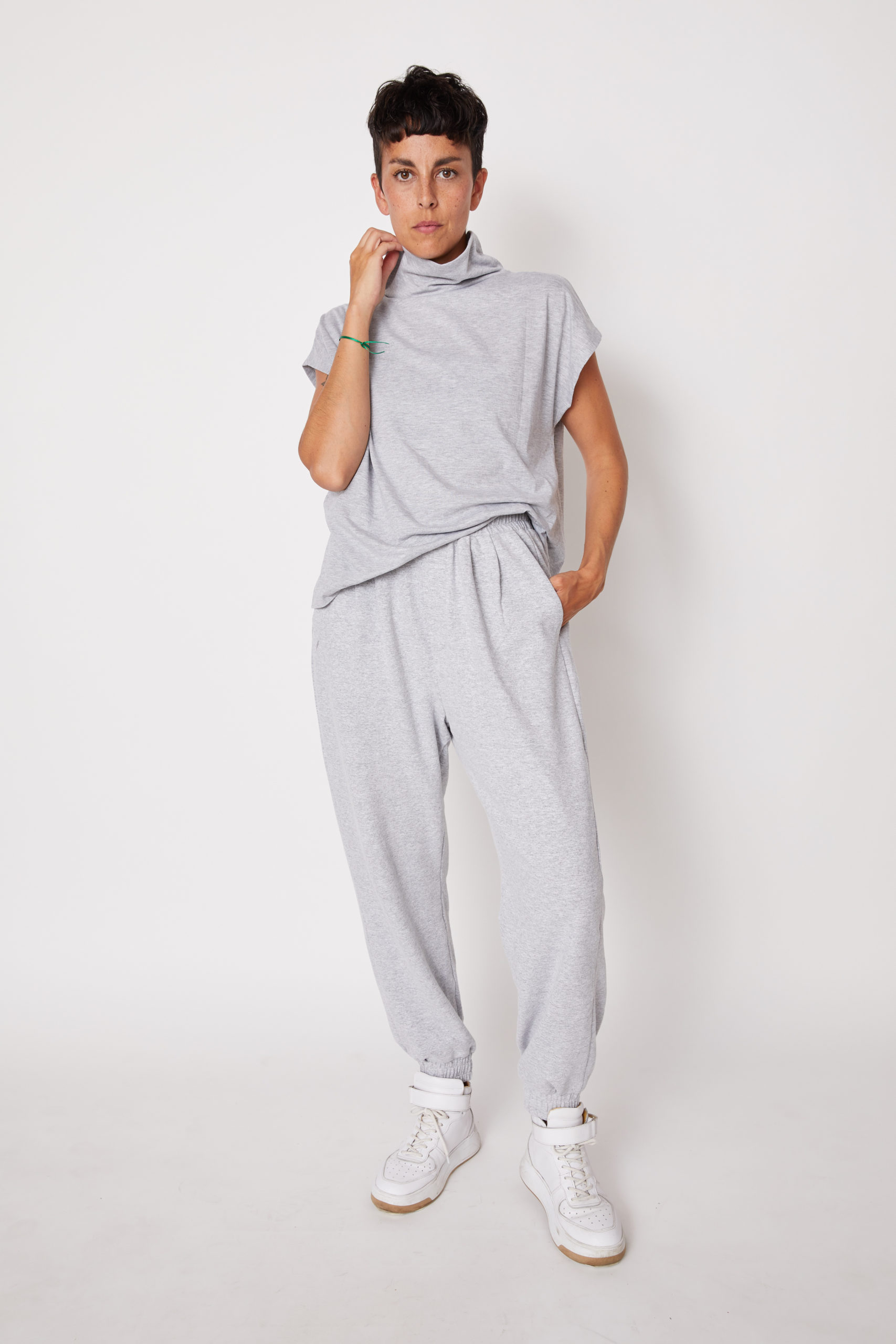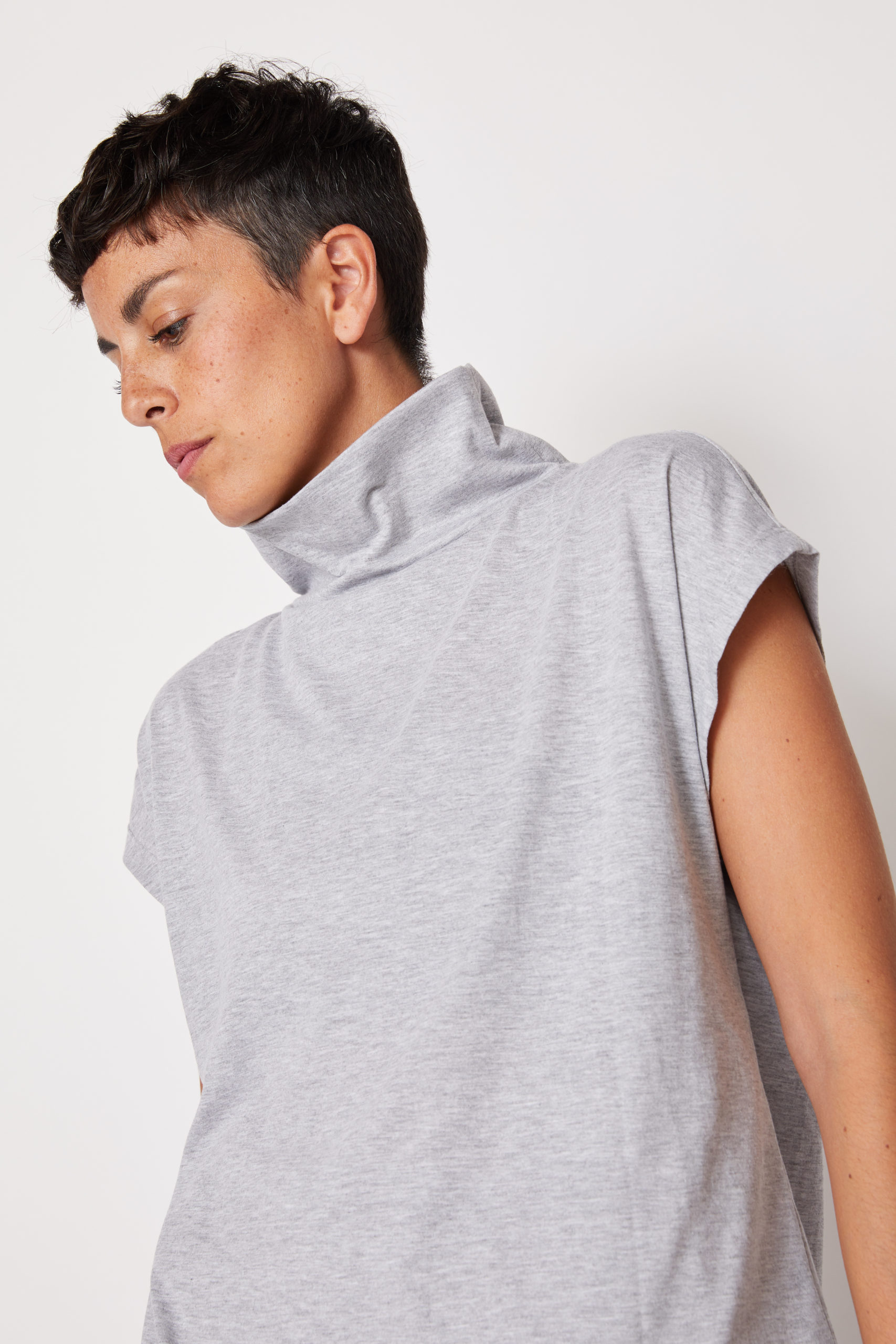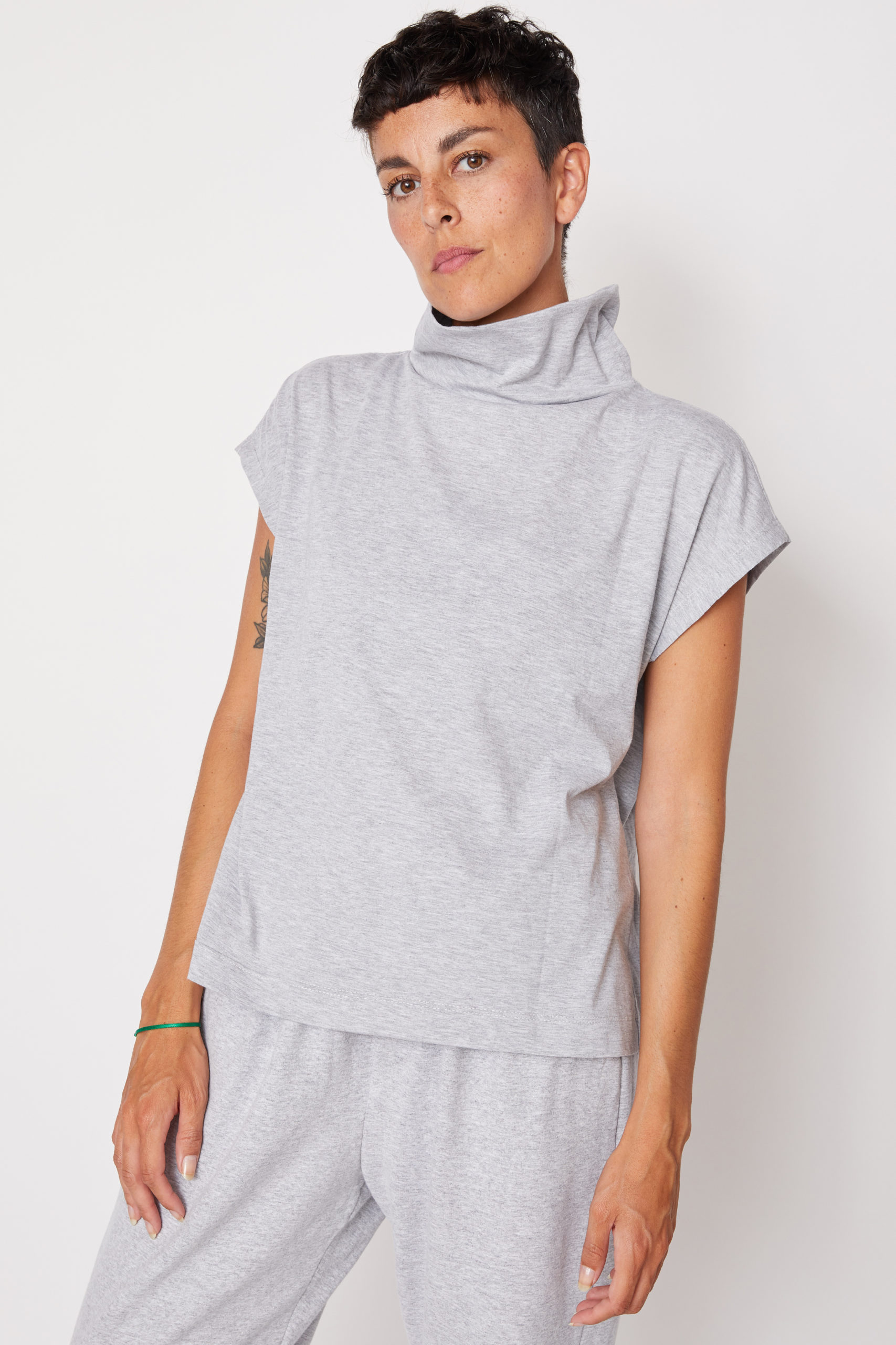 En jersey peinado 30/1, super soft. Con cuello doble y mangas japonesas que continúan del delantero, no necesitamos agregarle nada más porque ese cuello es todo. Composición: 100% algodón.