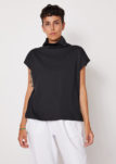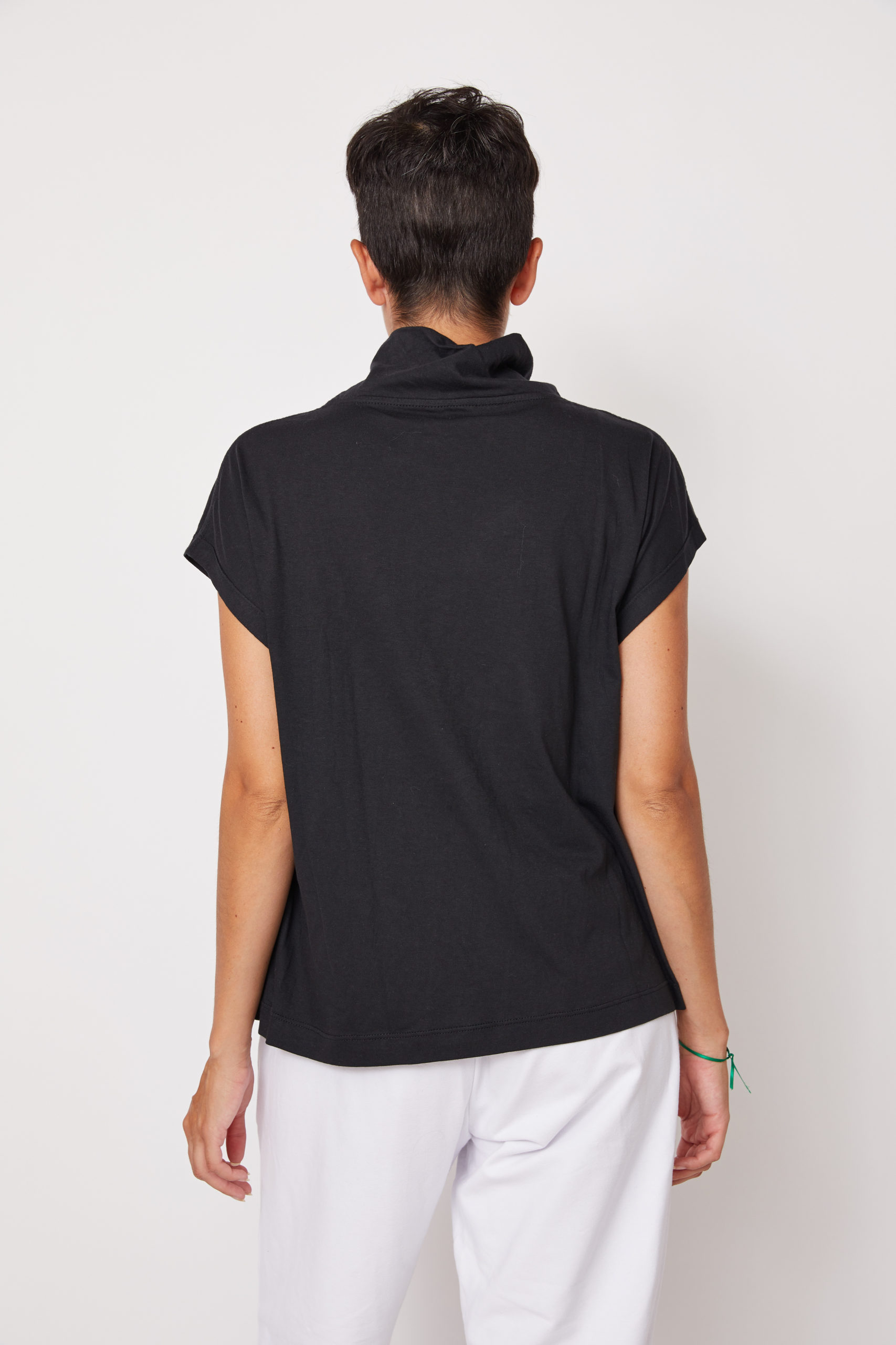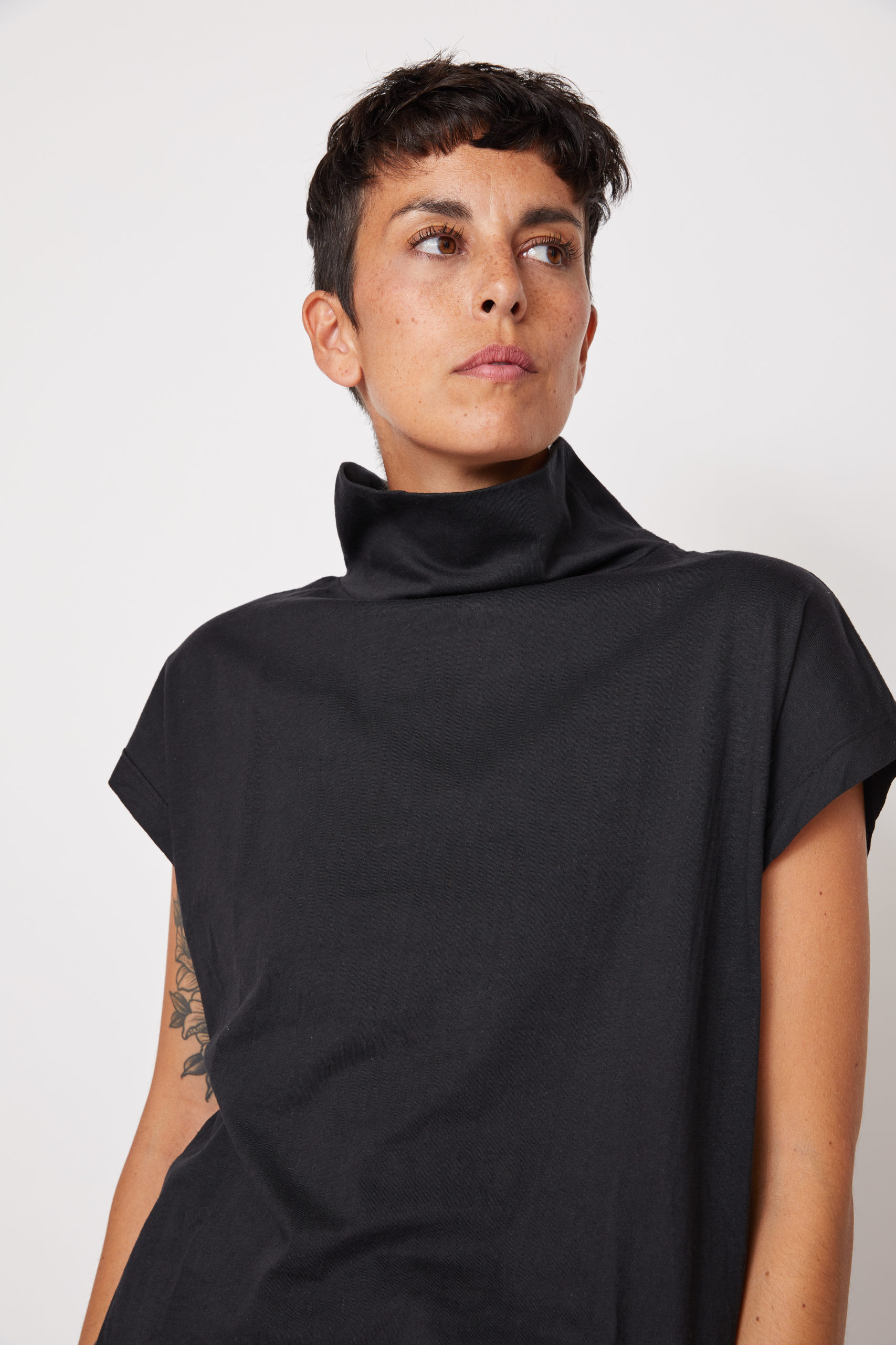 En jersey peinado 30/1, super soft. Con cuello doble y mangas japonesas que continúan del delantero, no necesitamos agregarle nada más porque ese cuello es todo. Composición: 100% algodón.