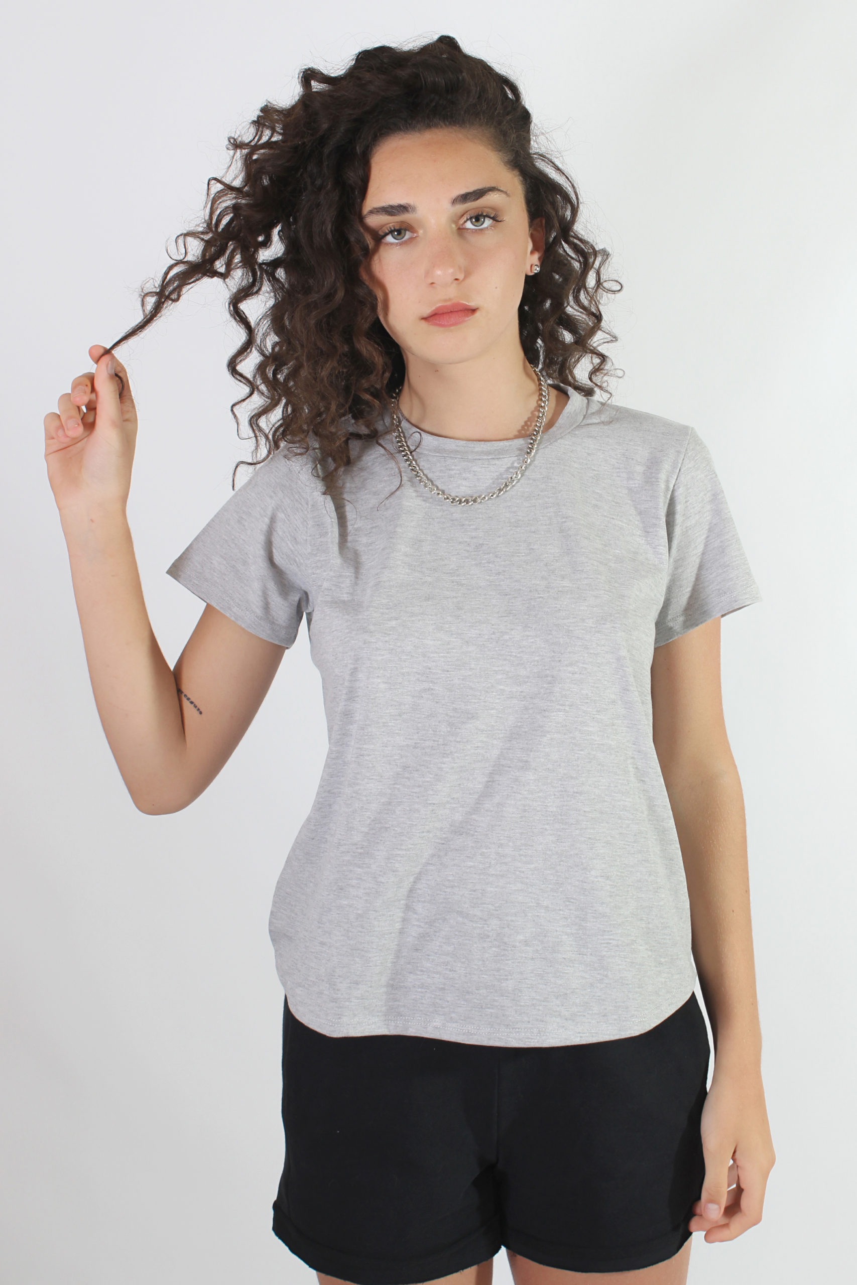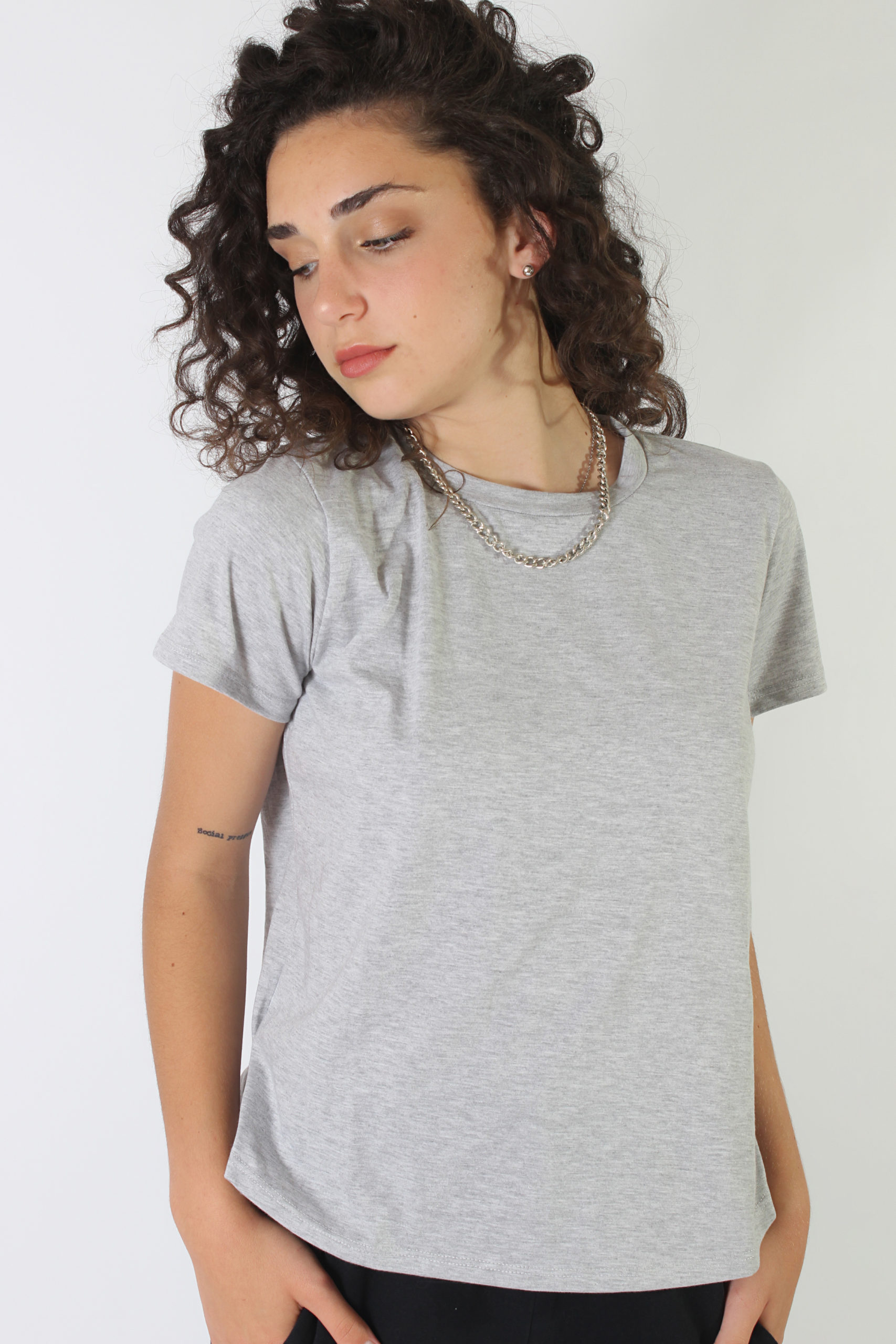 Básica con escote redondo a la base del cuello, bien cerradito lo que la hace súper femenina.