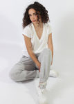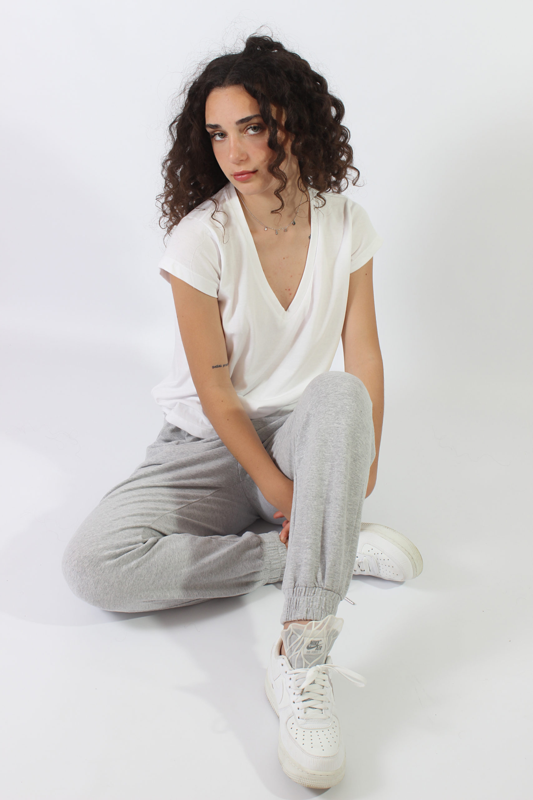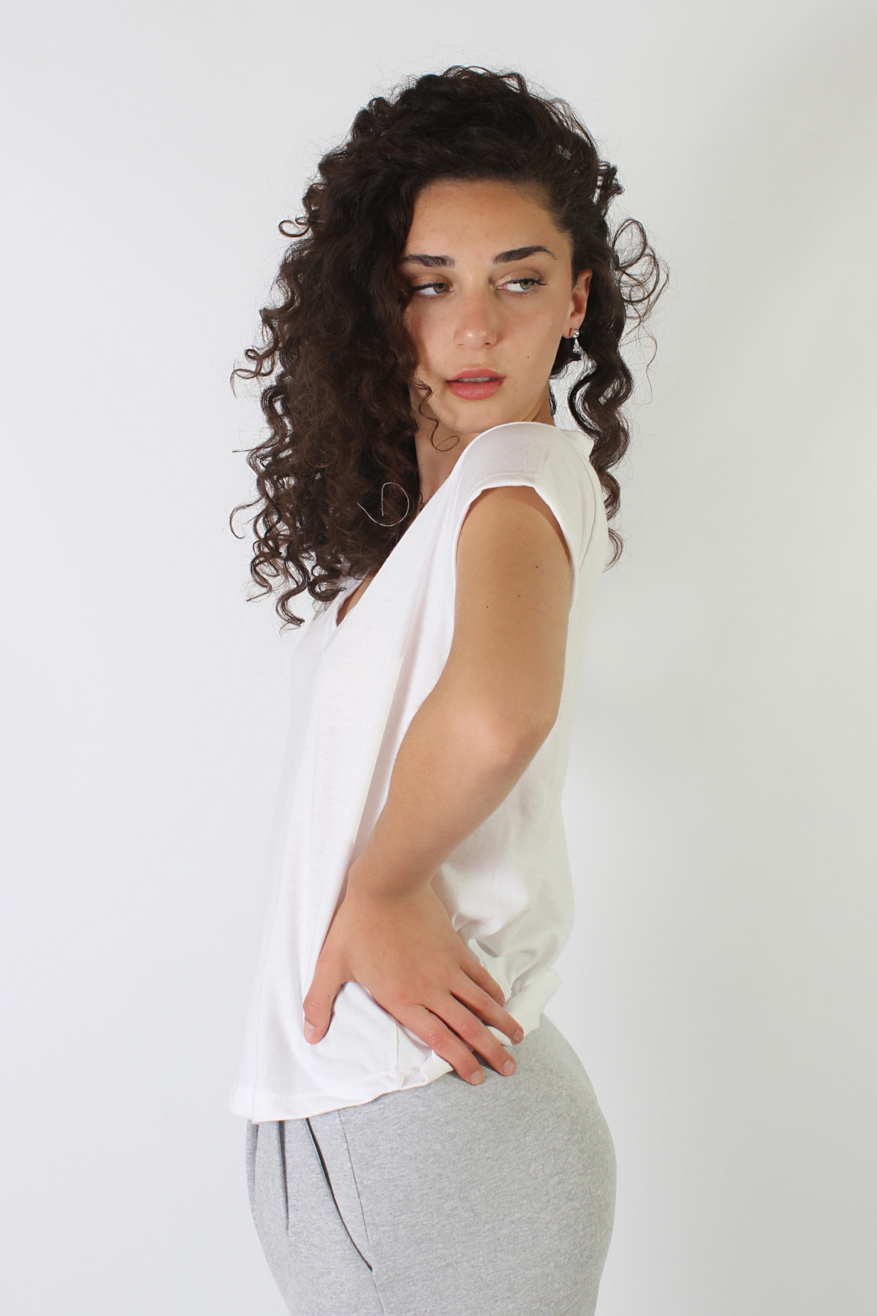 Giu mide 1,78 mt y tiene puesto un talle “2”.