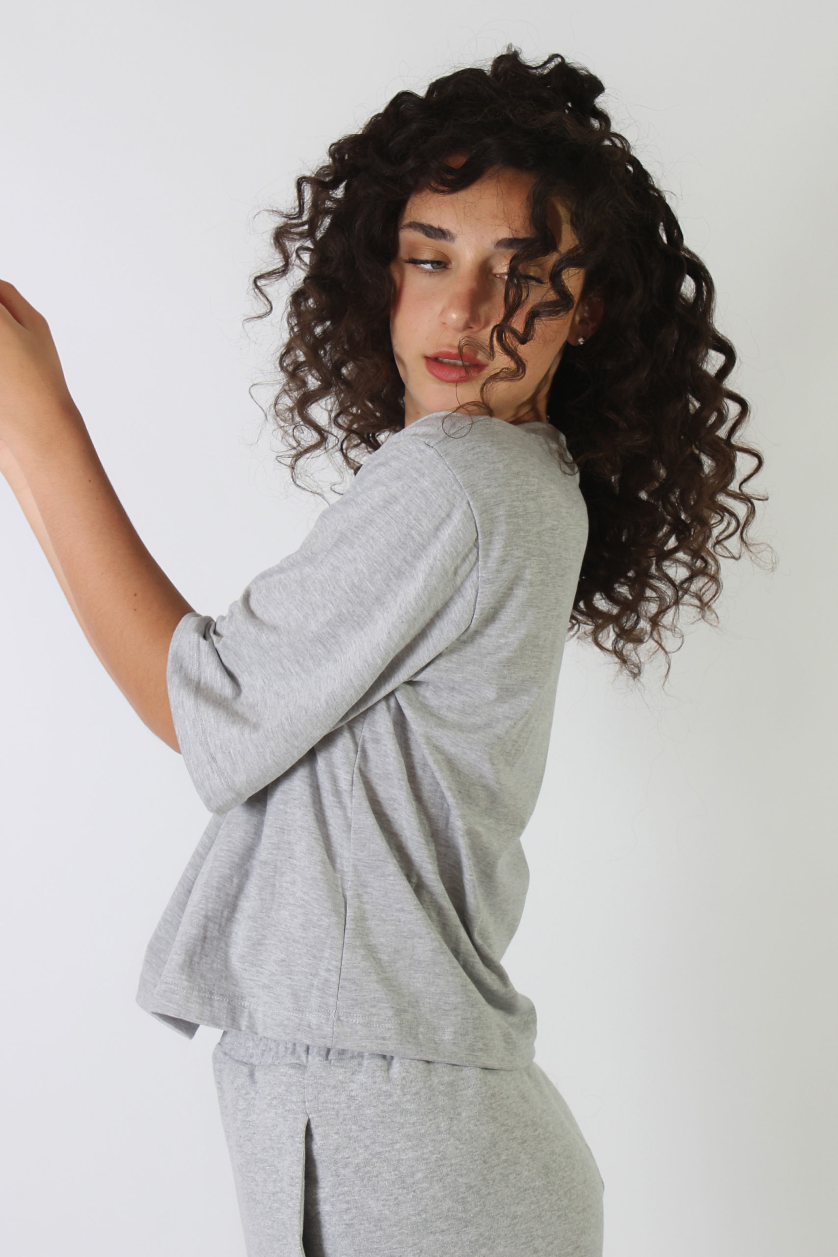 Básica con escote redondo, calce oversize, largo a la cintura, con mangas hasta el codo, la más canchera sin dudas.