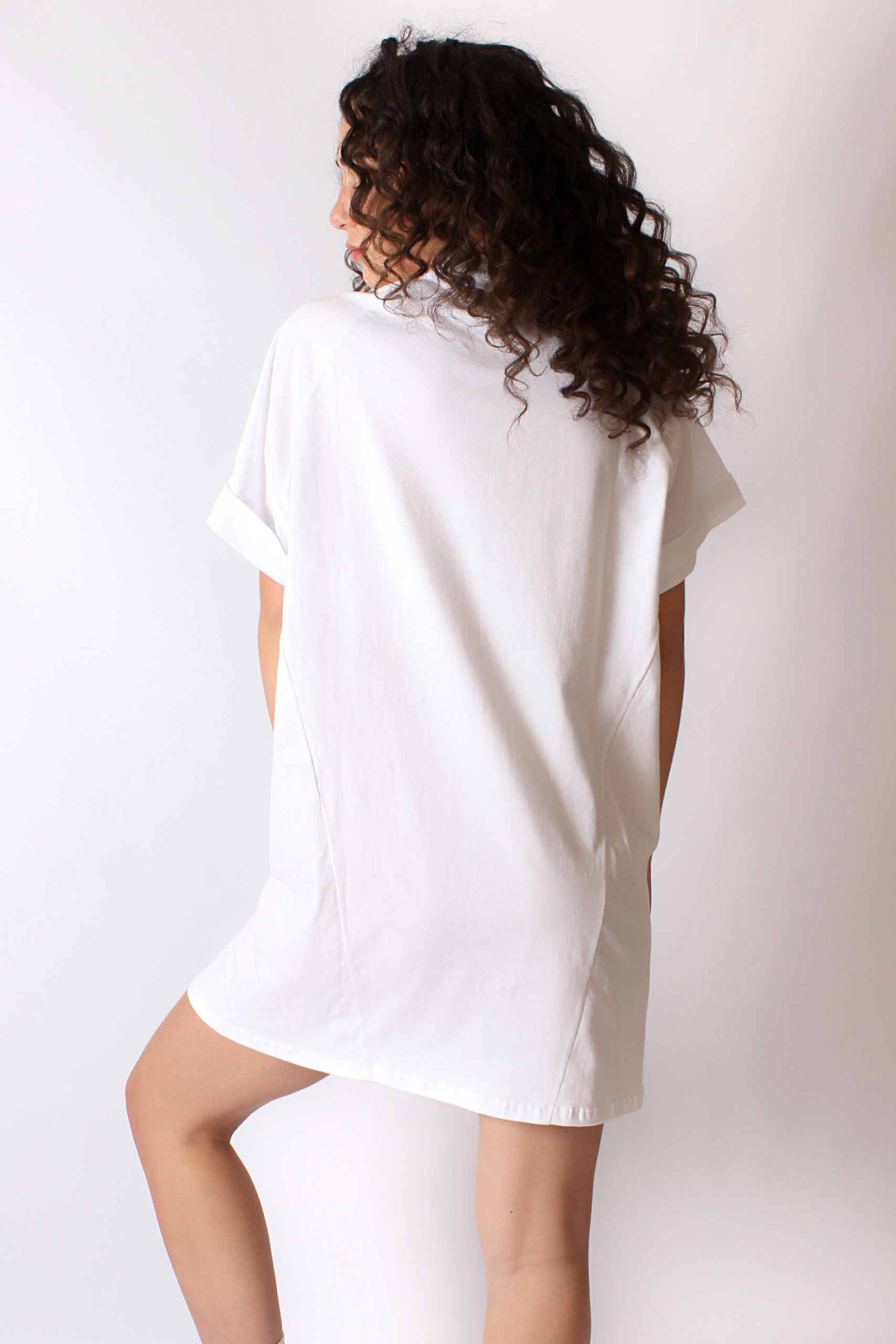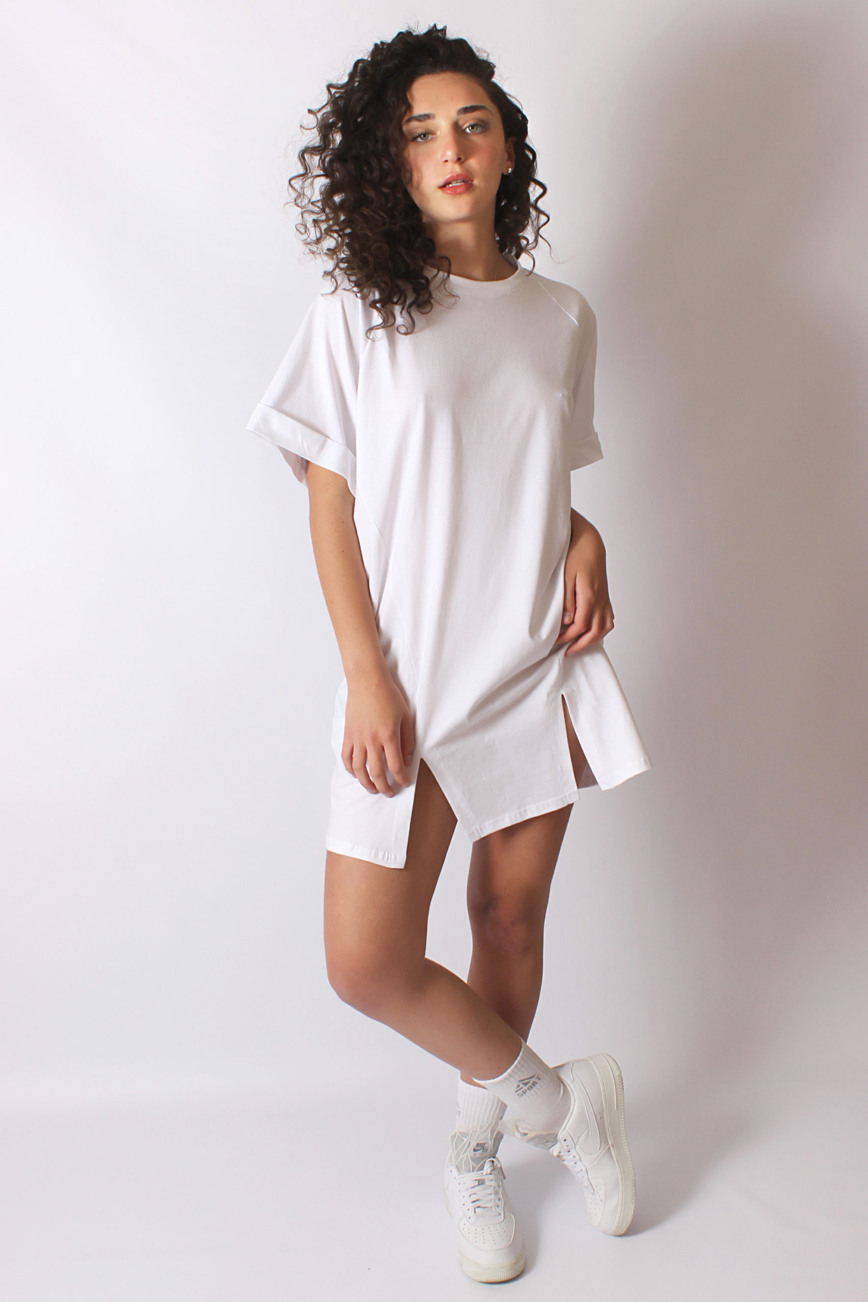 Vestido remerón con recortes laterales que vuelcan hacia el delantero formando dos tajos que te permiten moverte sin problema y estar súper cómoda como es nuestro lema.